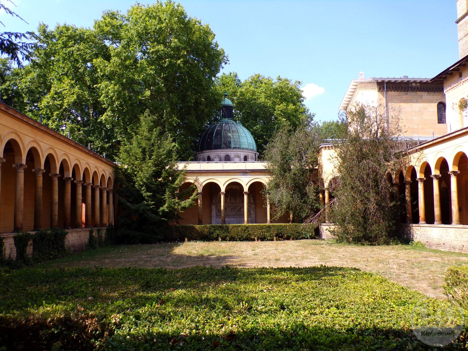 Kościół Pokoju (Friedenskirche) znajdujący się w parku Sanssouci, ma dość osobliwą architekturę. Został zaprojektowany w połowie XIX w. i jest miejscem spoczynku członków rodu Hohenzollernów – swoiste mauzoleum.