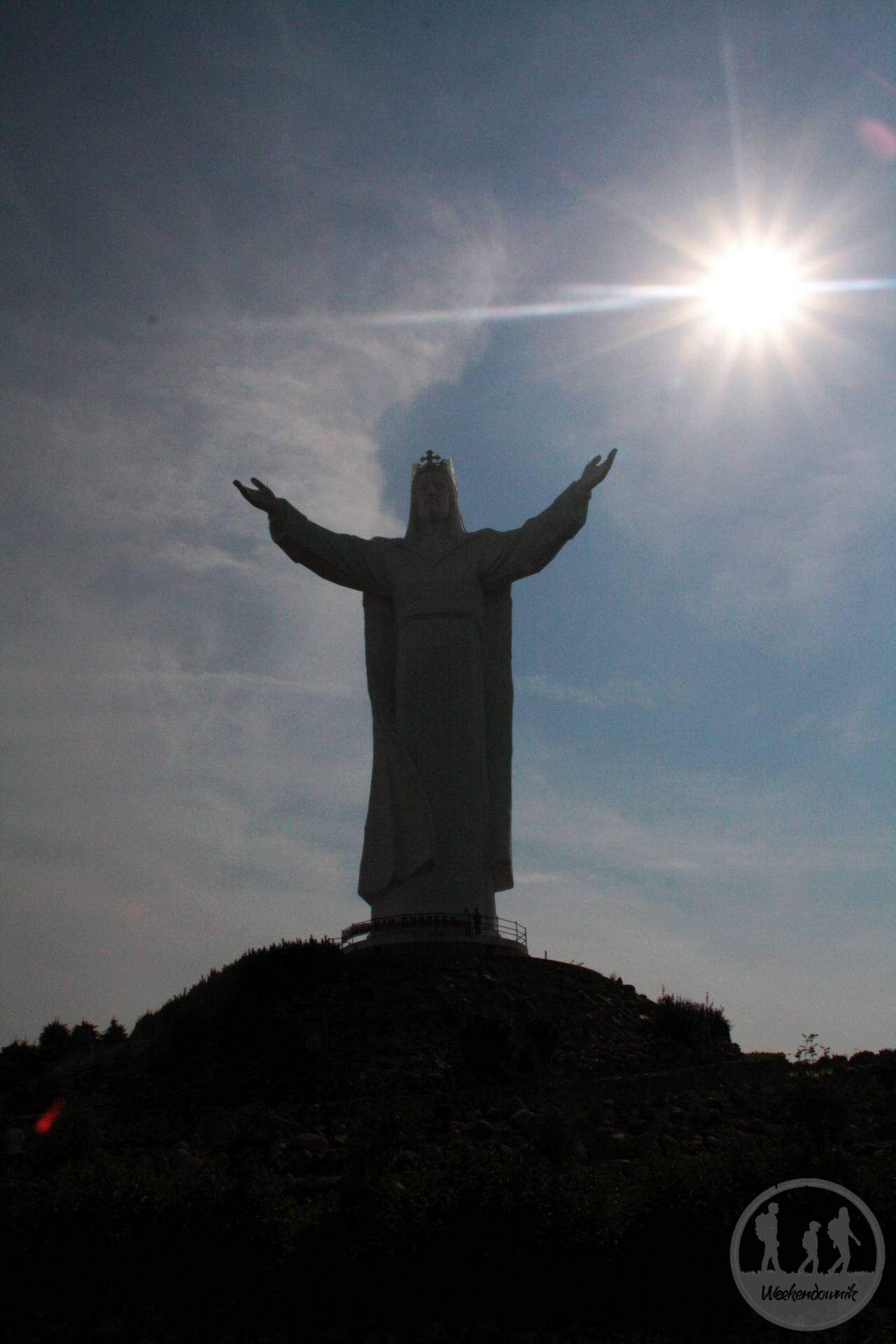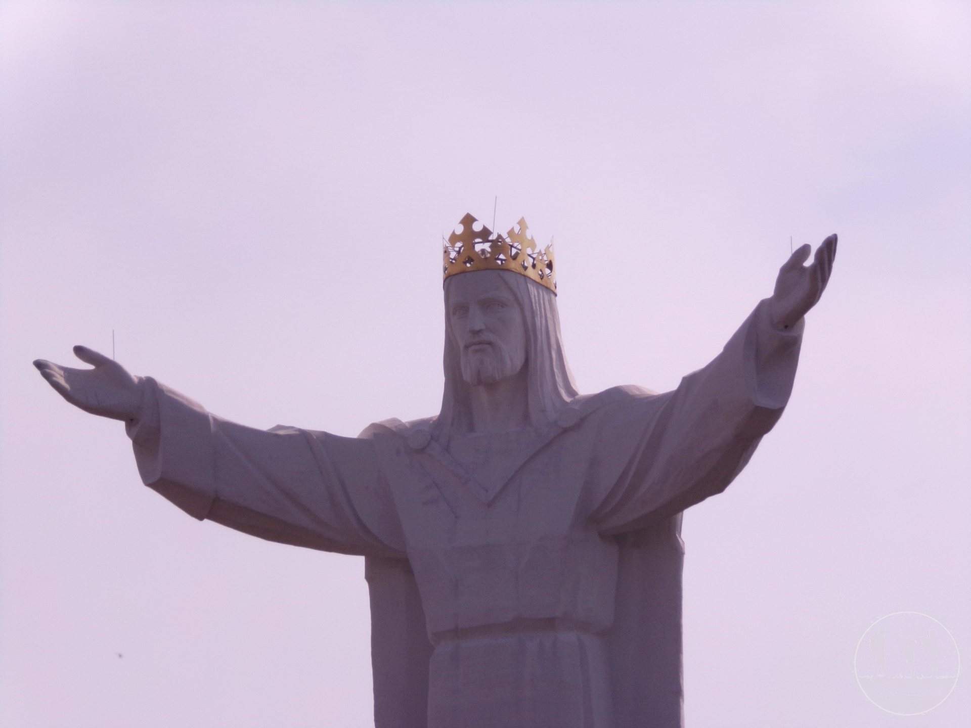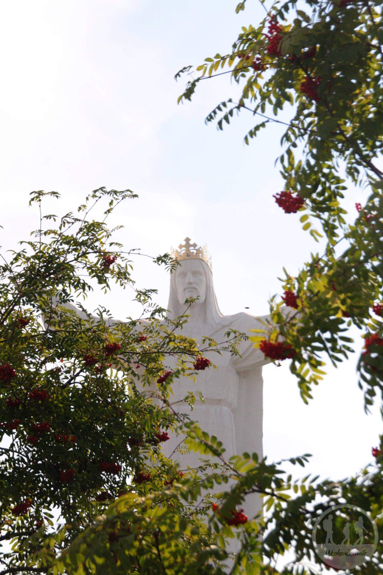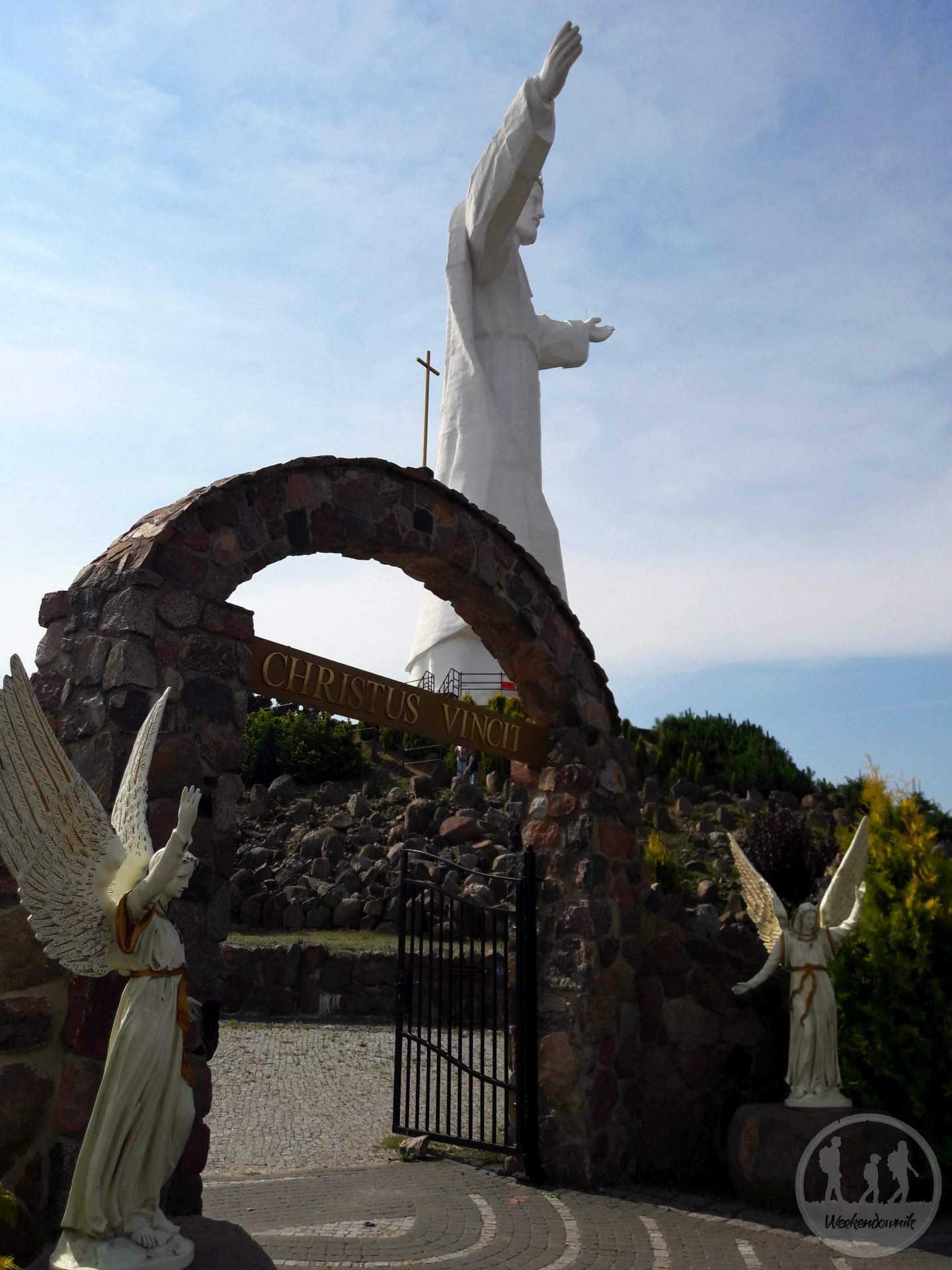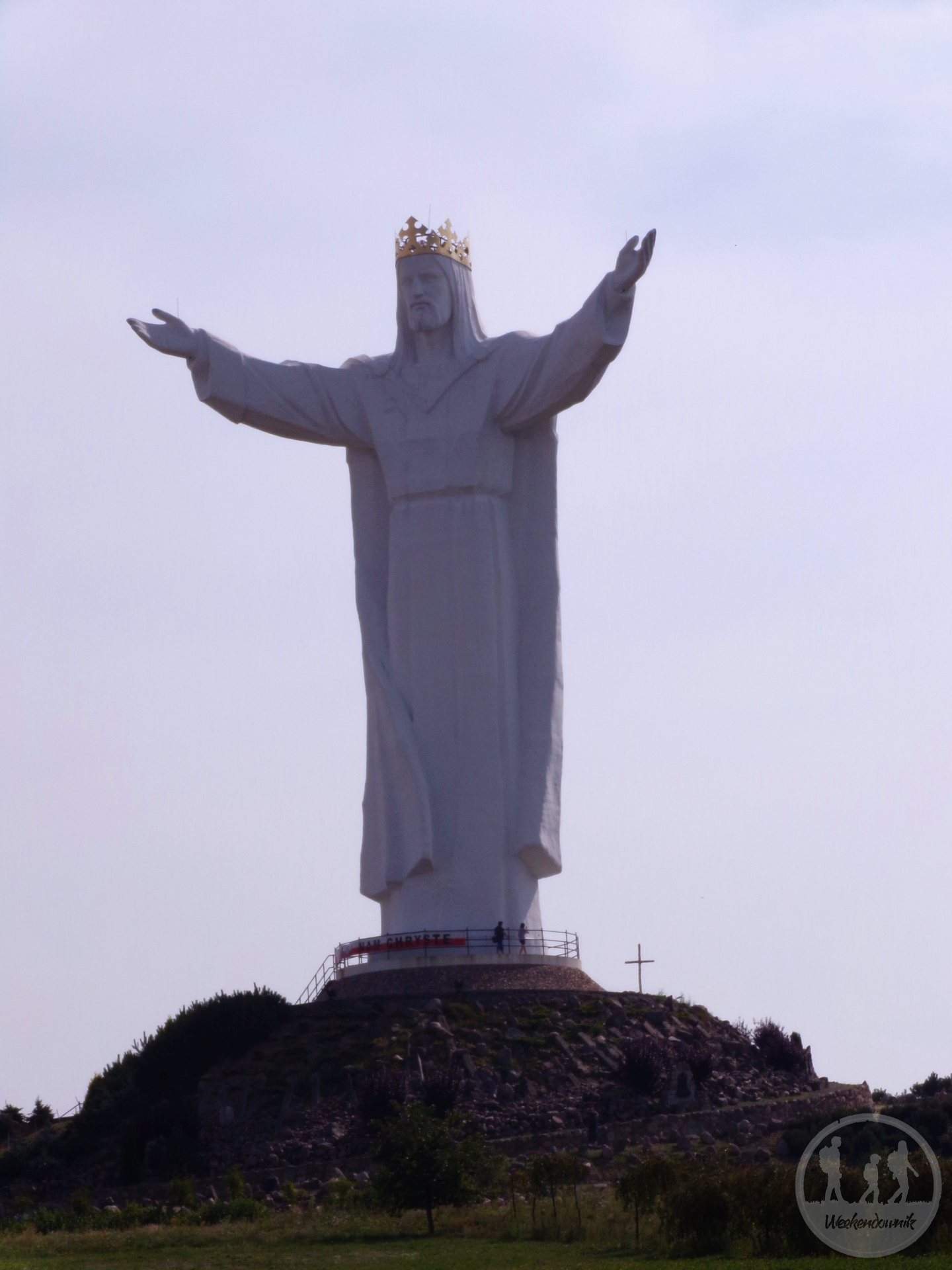 Jadąc do Słubic nie sposób było nie zajechać do Świebodzina aby obejrzeć na własne oczy figurę Chrystusa. Nie powiem, widać go z kilku kilometrów, robi wrażenie. Całkowita wysokość pomnika wynosi 36m, z czego sama pozłacana korona ma 3m. Żeby jeszcze go podwyższyć wybudowano go na sztucznie usypanym ponad 16-metrowym kopcu, dzięki czemu łącznie mają 52,5m. W 2011r. w wysokości prześcignęła go figura w Limie licząca 37m. (22m figura i 15m podstawa), ale nadal sama figura Chrystusa jest w Świebodzinie największa.